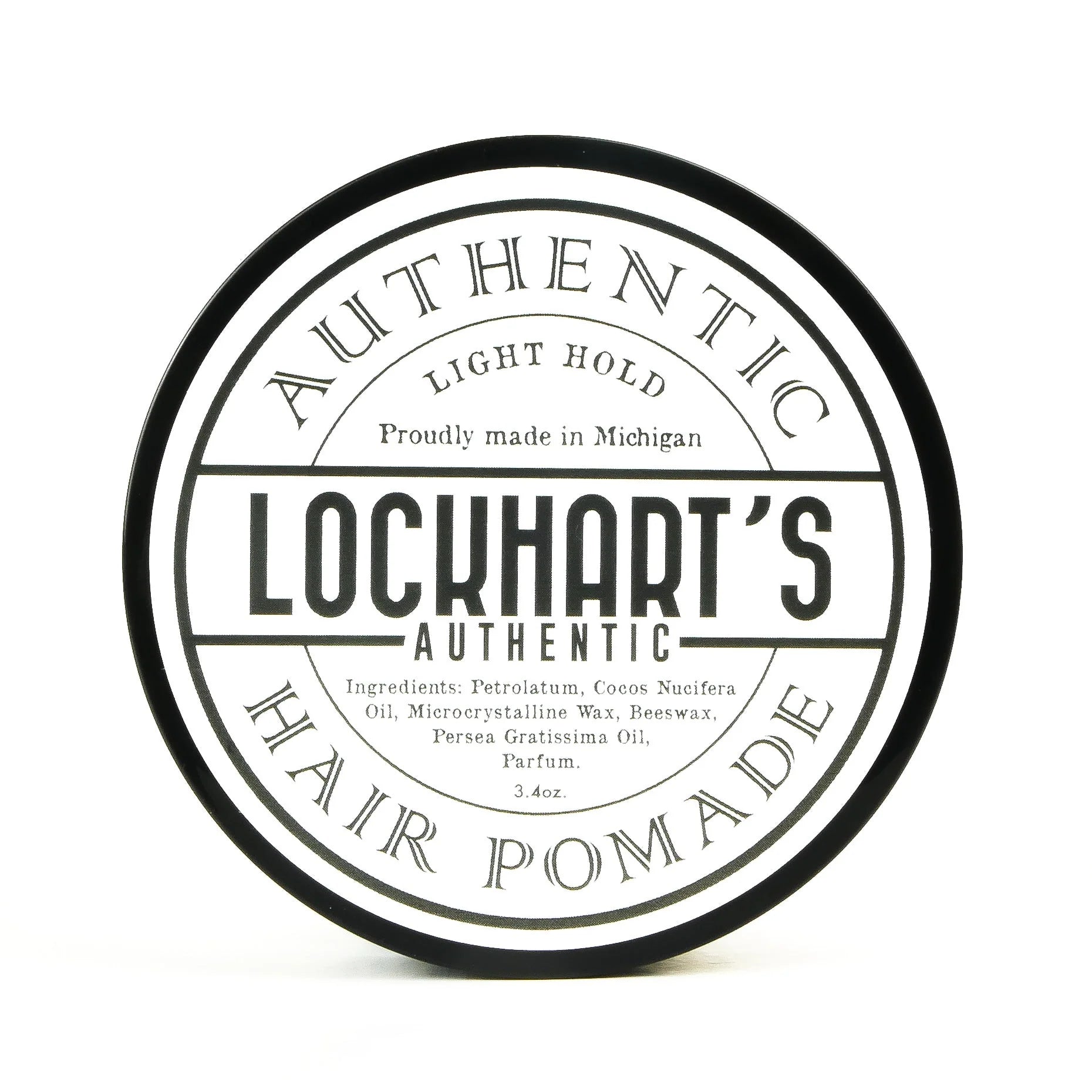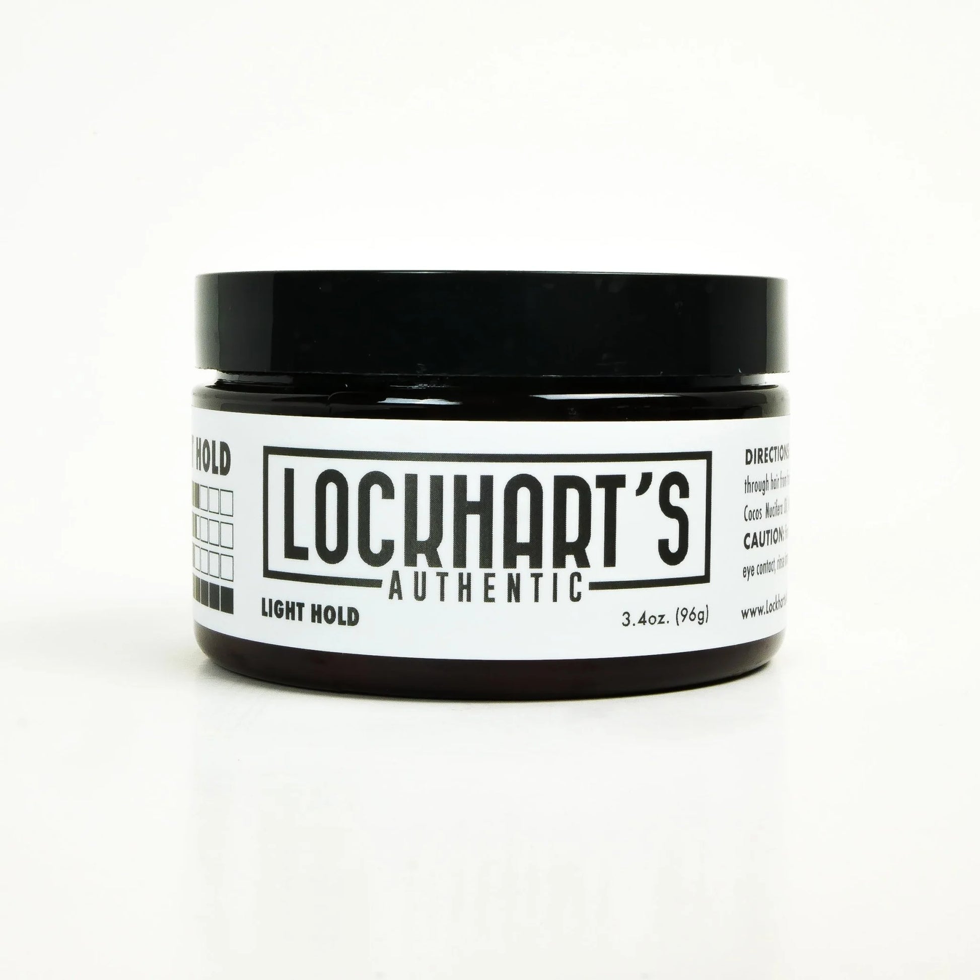 Lockhart's Light Hold Pomade provides a brilliant and long-lasting high shine, perfect for slick backs, gentleman parts, and adding extra shine to hairstyles with heavier holds. Its signature scent is a unique masculine blend of clove and cinnamon. Light hold and long-lasting shine make Lockhart's the perfect choice for any hairstyle.